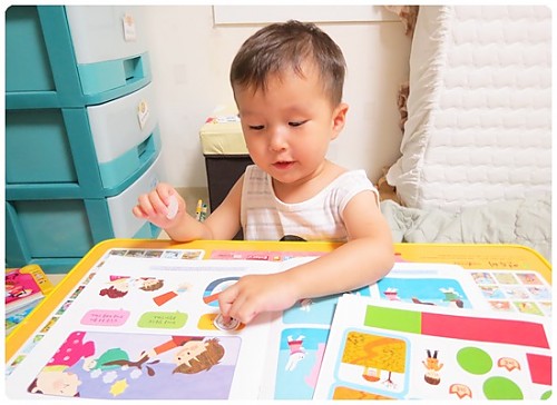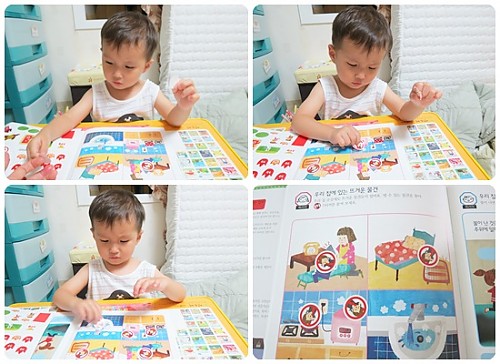 물건을 짚어서 말해주었더니 스티커를 달라고해서 직접 붙여 주어요~